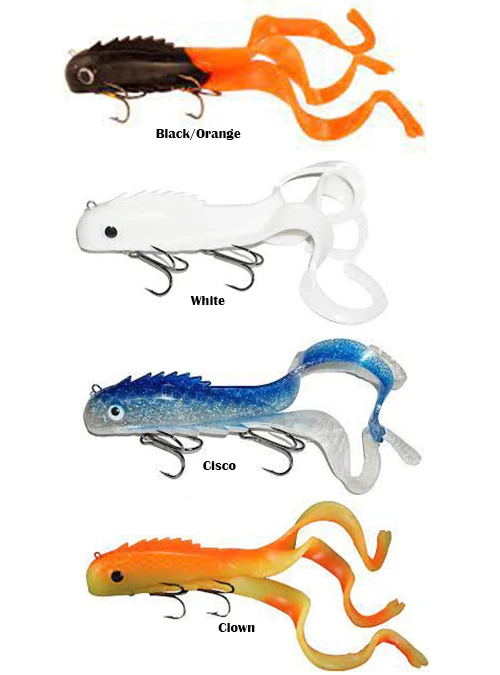 Designed to the perfect length, precise weight, and balance. Three tail design. Can be straight retrieved, pulled, twitched, or jigged. (2) 6/0 Premium Black Trident Treble hooks.